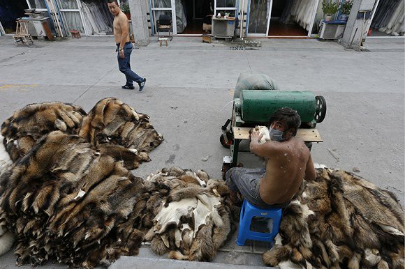 可惜如今,这个产业正遭受重创。一件貂皮大衣曾经卖人民币两三万元,现在已经跌到一万元左右,降幅过半。其他的动物毛皮成衣价格情况也差不多。