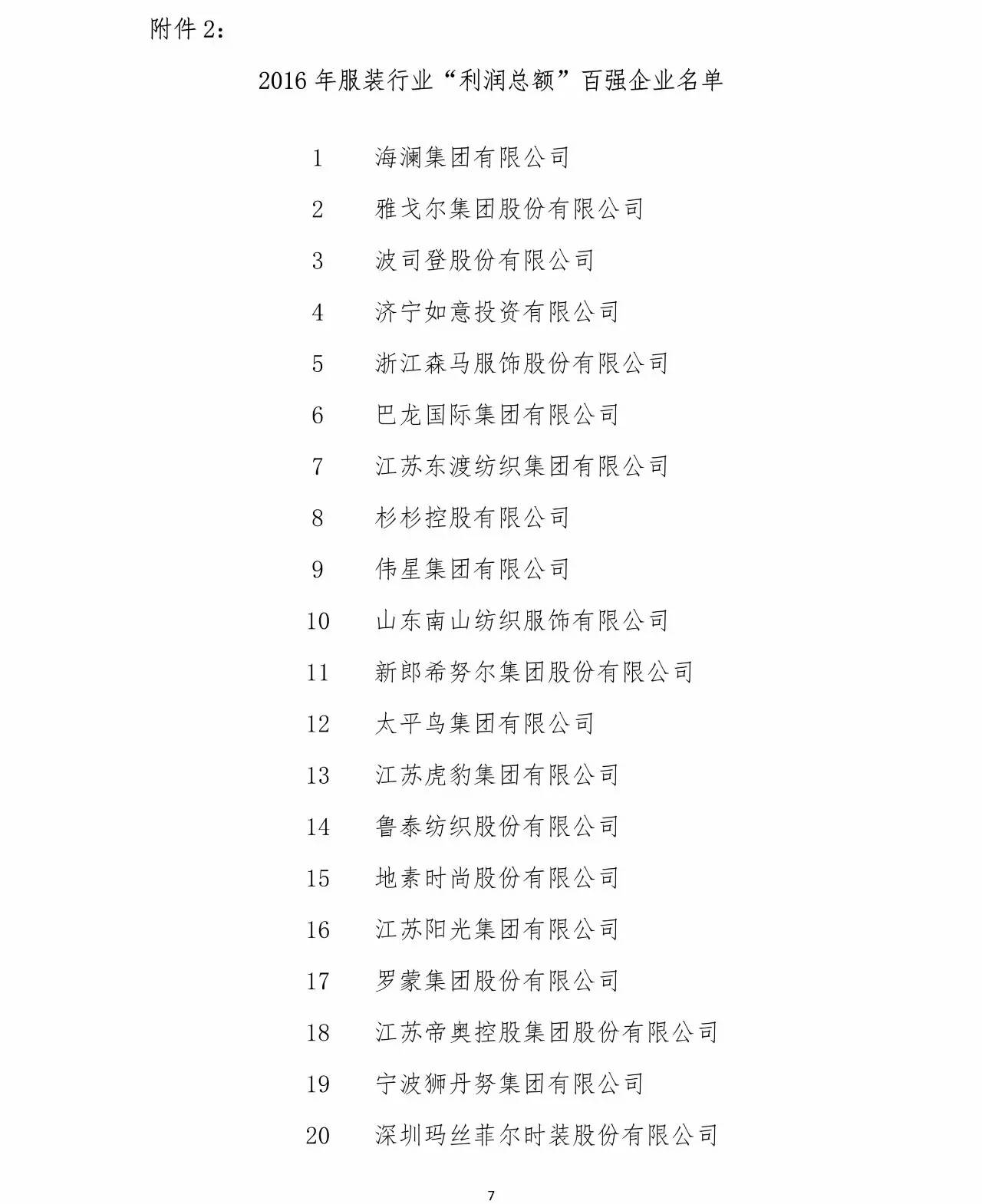 2017年7月,中国服装协会正式发布“2016年服装行业百强企业”名单。
