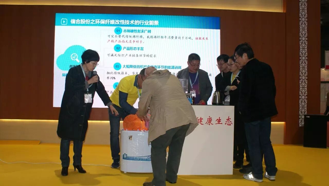 2017年3月15-17日,由中国纺织工业联合会主办,中国国际贸易促进委员会纺织行业分会、中国毛纺织行业协会、中国化学纤维工业协会、中国麻纺织行业协会、中国纺织信息中心联合承办的第十二届中国国际纺织纱线(春夏)展览会,与intertextile中国国际纺织面料及辅料(春夏)博览会、ph value中国国际针织(春夏)博览会、chic中国国际服装服饰博览会(春夏)同期同地举办。持续打造从纱线、面料到成衣的服务于全产业链的纺织行业专业盛会。此次展会期间我公司专利技术“无污印染技术”与“改性棉”产品,受到业内国内外众多企业同行的一致好评,反响巨大。