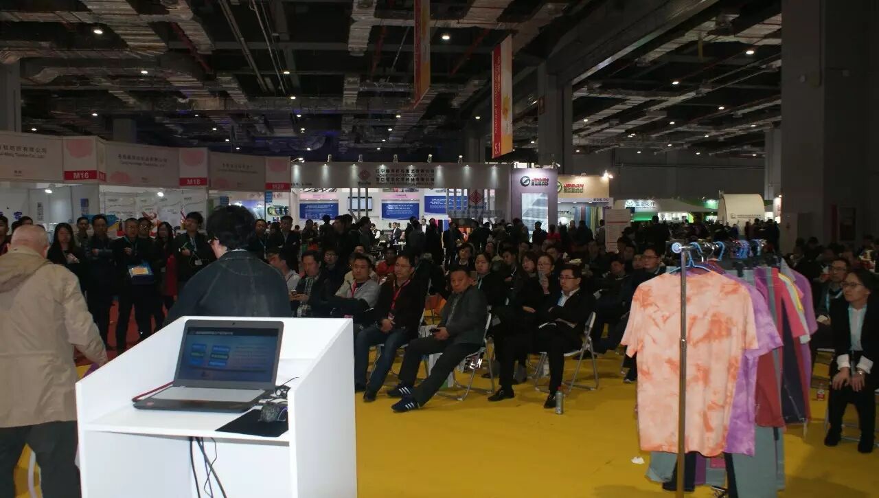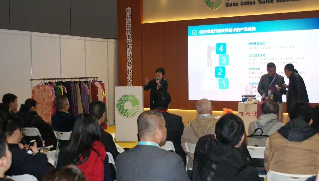 中国国际纺织纱线(春夏)展览会、棉纤维改性无污印染染色技术专题讲座现场。