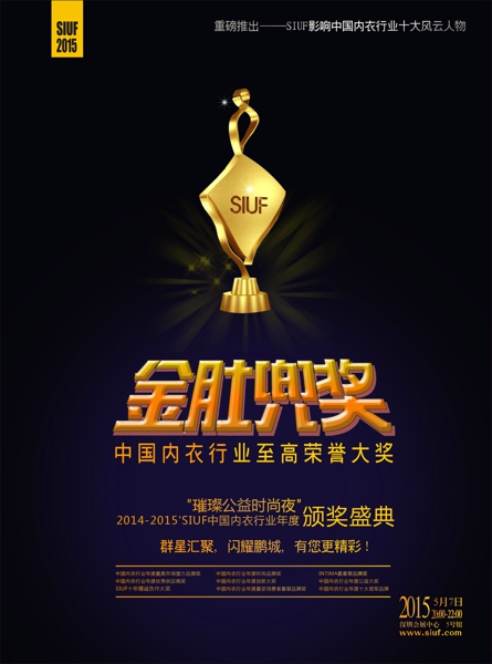 siuf“金肚兜奖”2014-2015′中国内衣行业年度大奖,具体奖项设置如下: