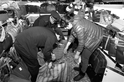 据了解,1月9日,朝阳工商分局出动175名执法人员,对销售侵权商品较为集中的地区、市场,包括秀水街市场等开展突击检查。当天下午1点多,在日坛服装东楼的3楼,执法人员发现一个商铺内卖的有“爱马仕”丝巾、“boss”男装衬衫、“prada”皮包,有的标价近7000元。工商人员将这些涉嫌假冒的商品下架,并进行了清点。
