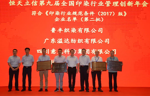 会上,第二批印染行业规范公告企业获得表彰。